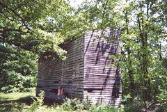| The com crib was a rectangle building located west of the barn. The boards on the outside of the crib were not close together but had a space between them so air could circulate. I don't know the reason for this but I think it was to let the com dry . |