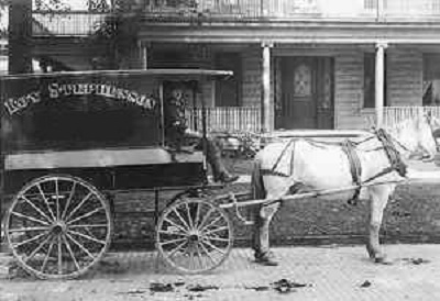 The peddlers would pay Amos Smith, our neighbor, a small fee to let them set up on a piece of his land that bordered the town. Each afternoon for two days the back doors of the house would open wide and the barker would step out onto the platform. There were shelves on the inside of the doors, filled with all sizes of colored bottles.. A blanket hung behind the salesman so we couldn't see into their living quarters.